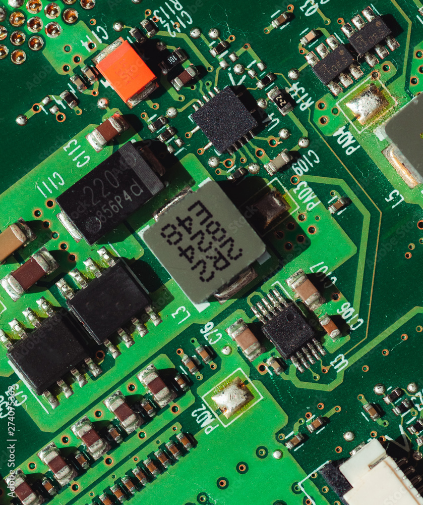 Macro photo of laptop microcircuits close up