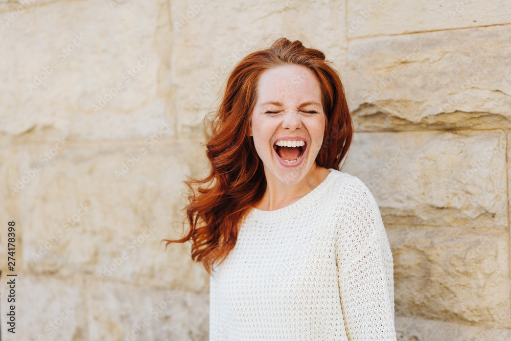 frau mit roten haaren schreit laut