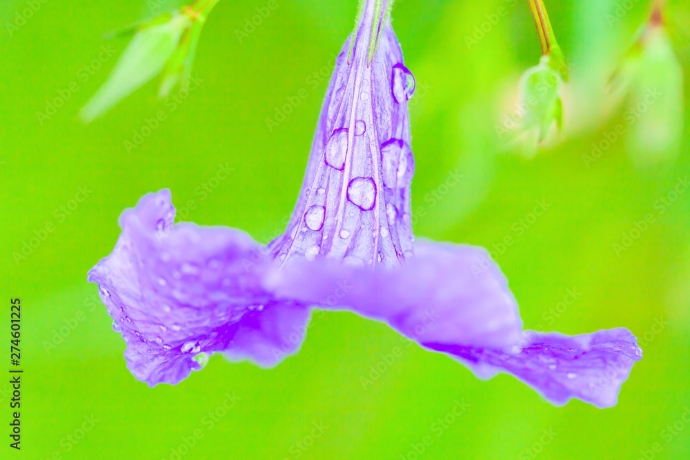 Fresh Ruellia tuberosa with water drops after the rain.