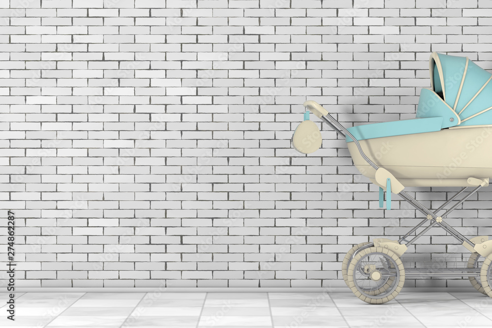 Modern Blue Baby Carriage, Stroller, Pram. 3d Rendering