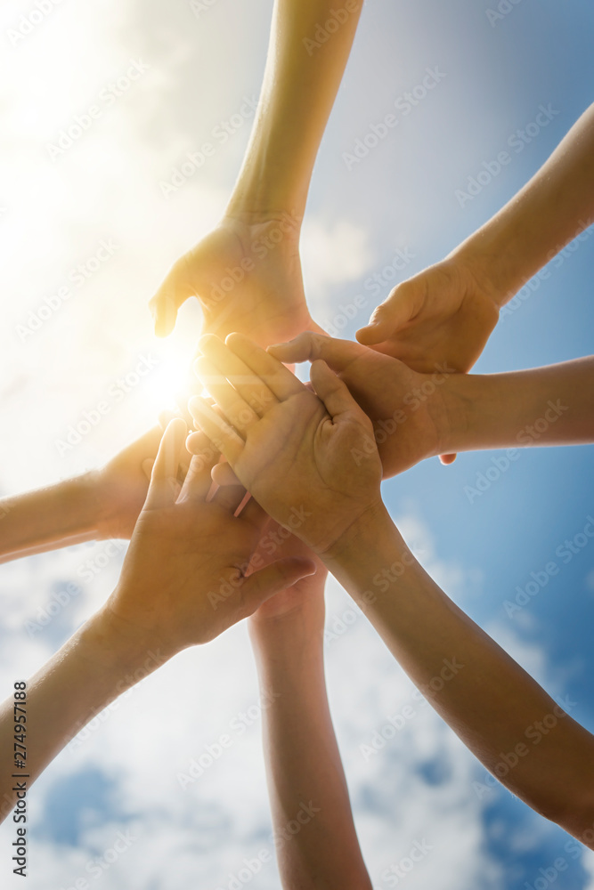Kinderhände beim abklatschen im Sonnenlicht
