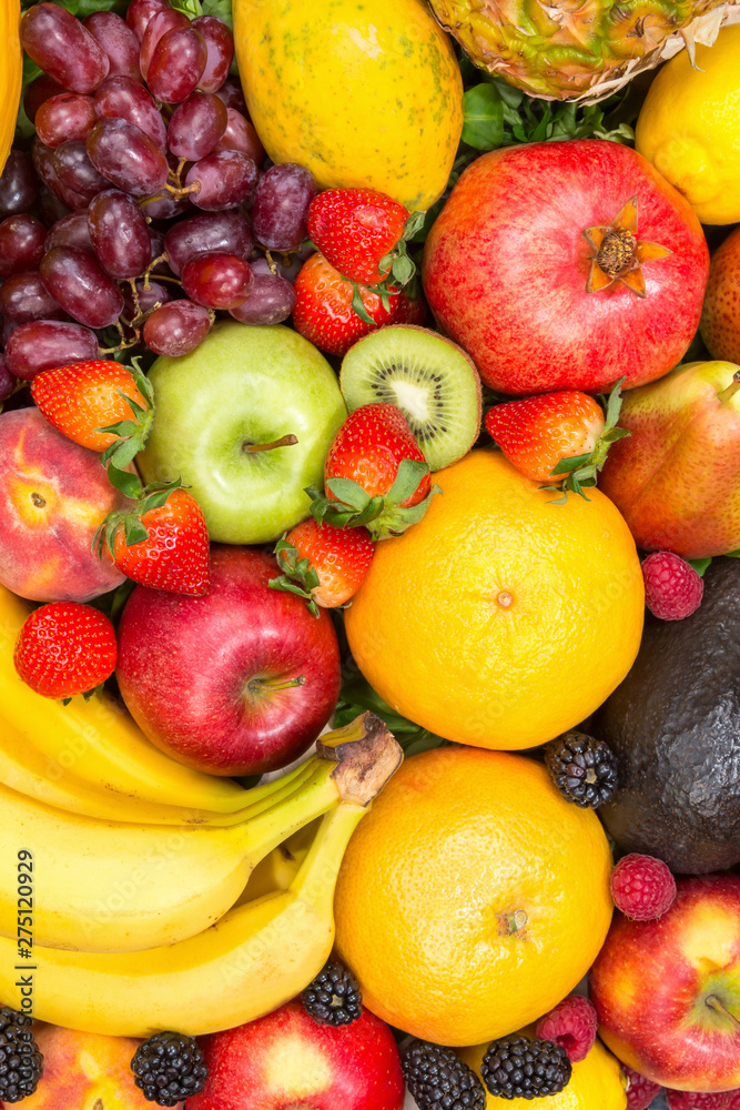 Food background fruits collection portrait format apples berries oranges lemons fruit
