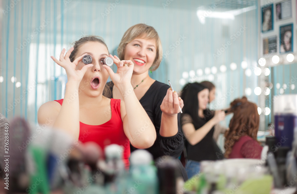 Young woman having fun and joking in a beauty salon.
