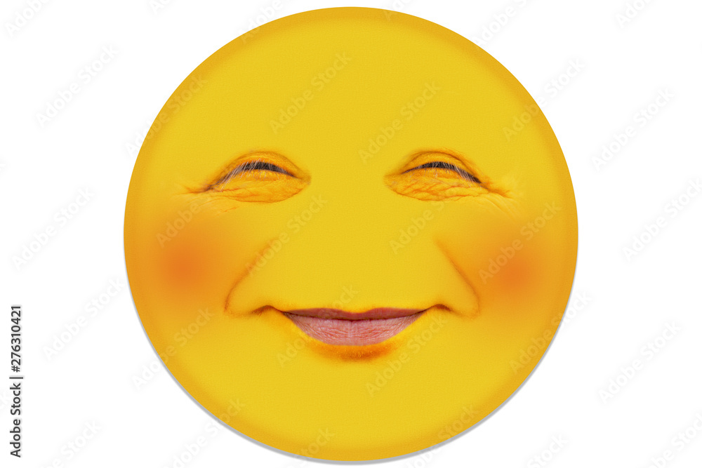 Ein Mann Mitte 40 lächt etwas schüchtern. Die Gesichtszüge weisen viel Mimik auf. Das Gesicht ist kreisrund ausgeschnitten und isoliert vor weißem Hintergrund. Das Gesicht hat rote Wangen.