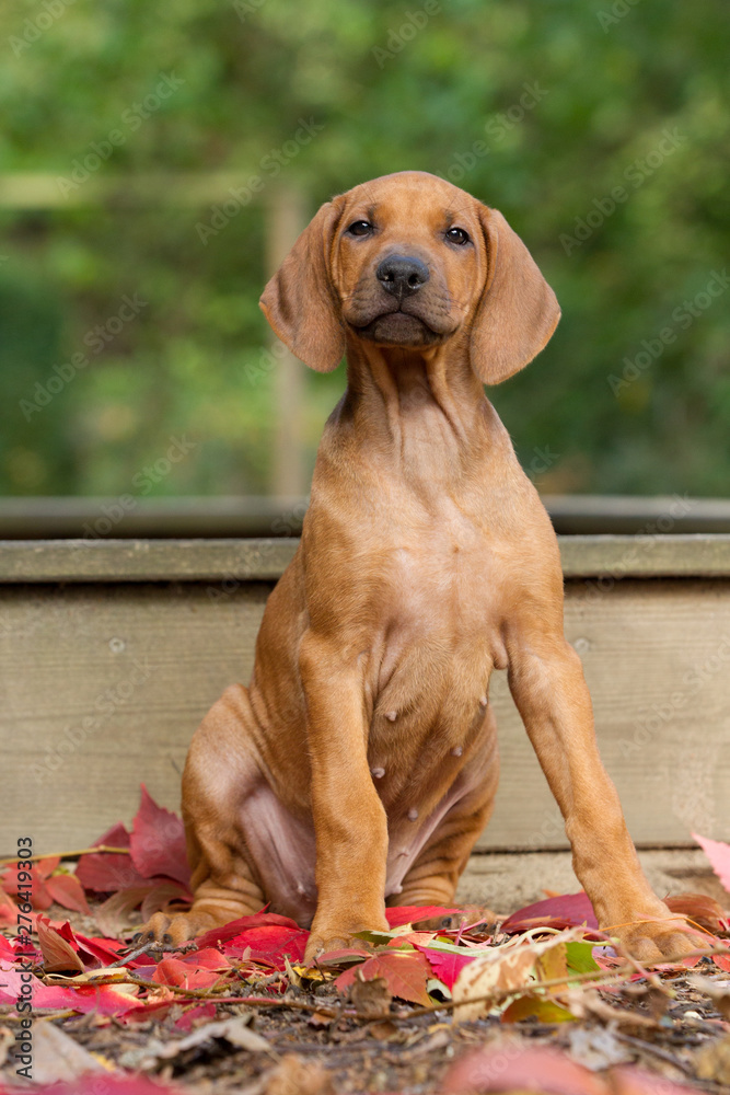 Rhodesian Ridgeback Welpe Rassehund im Herbst Laub