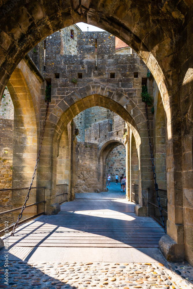 Entrée de la Cité de Carcassonne dans l'Aude en Occitanie, France