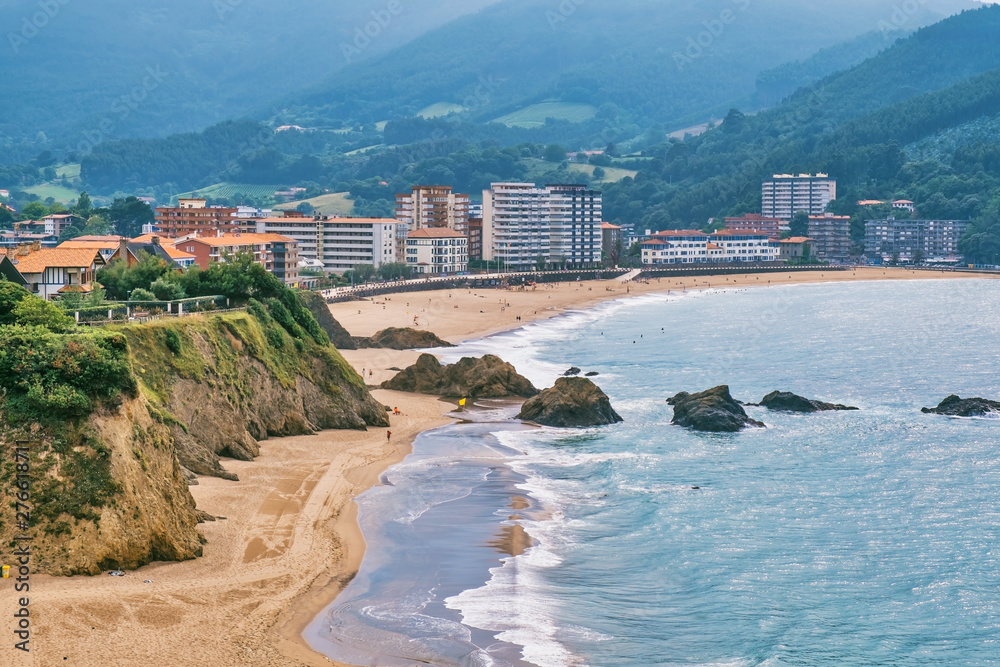 Panoramac view of beach in Bakio, Bizkaia, Basque Country, Spain.