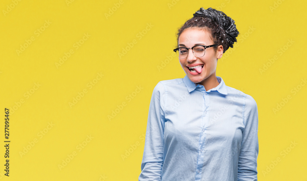 Young braided hair african american business girl wearing glasses over isolated background winking looking at the camera with sexy expression, cheerful and happy face.