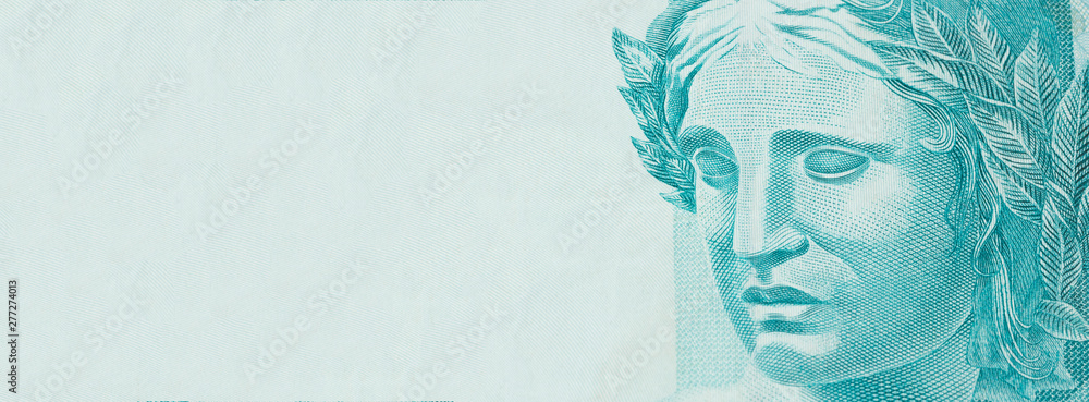 Republic's Effigy portrayed as a bust on Brazilian money. Concept of economy, inflation and business. Space for text.