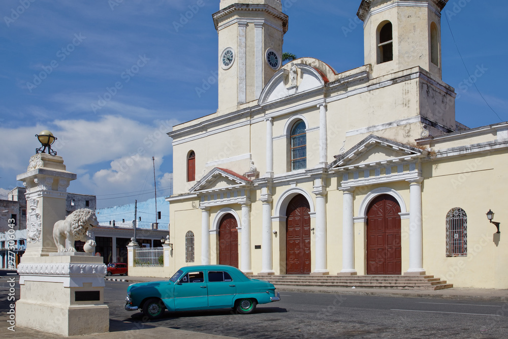 Cienfuegos, Cuba - July 26, 2018: Cathedral of the Immaculate Conception. In 2005 Cienfuegos was listed as a UNESCO World Heritage Site