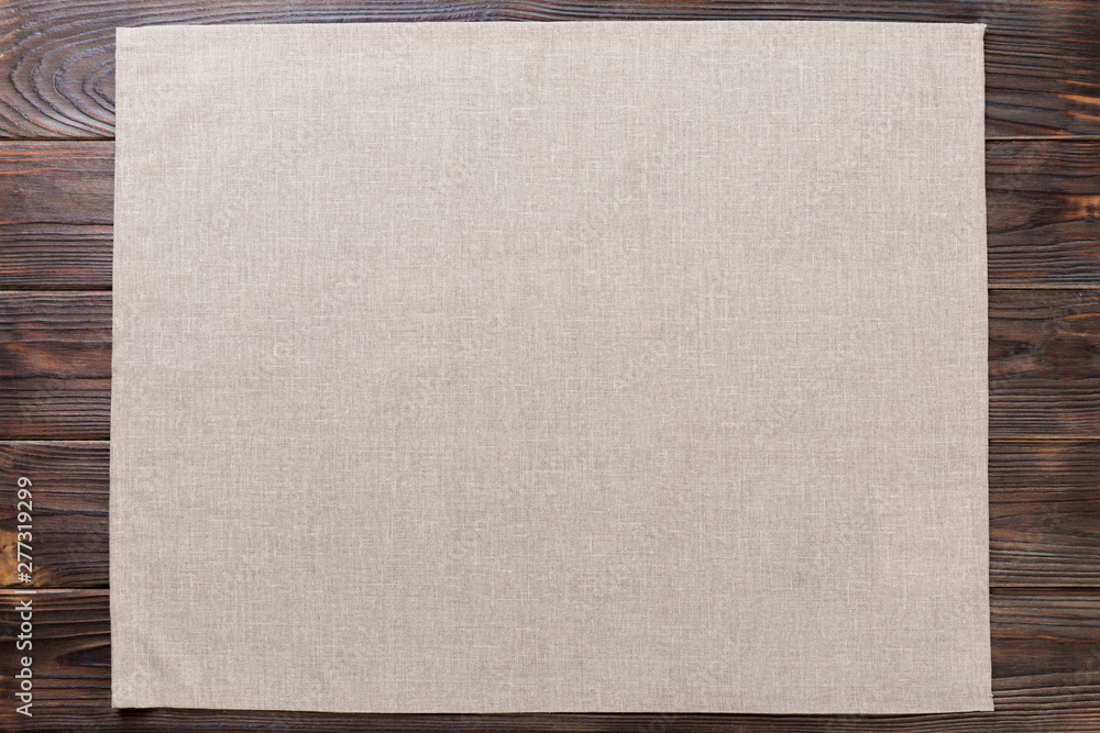 gray cloth napkin on rustic dark wooden background top view with copy space