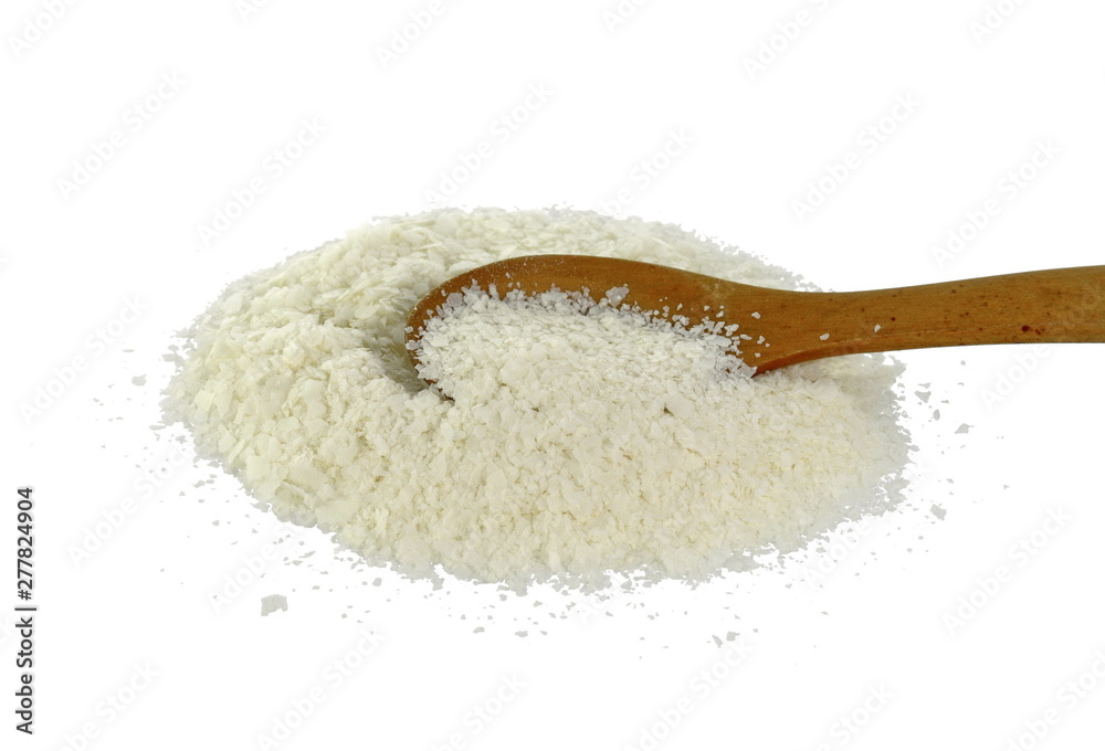 Instant potato puree flakes isolated on white.