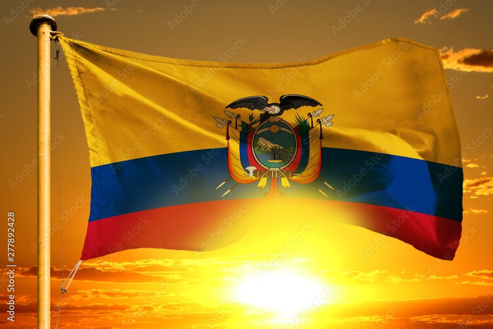 Ecuador flag weaving on the beautiful orange sunset with clouds background
