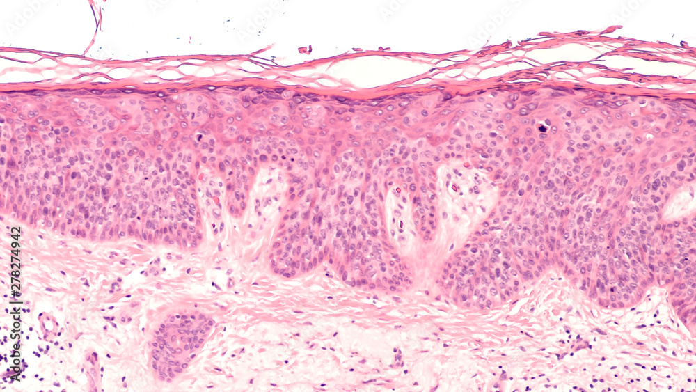 Cancer of Sun Damaged Skin: In squamous cell carcinoma in situ ("Bowen's disease"), malignant cells are confined to the epidermis, without invasion. Regular use of sunscreen can be preventative.