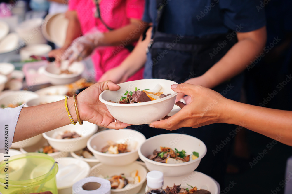 Concept of famine and social inequality : Free food for the poor and Food distribution : Sharing Food With Homeless : concept Tackling Hunger and Food