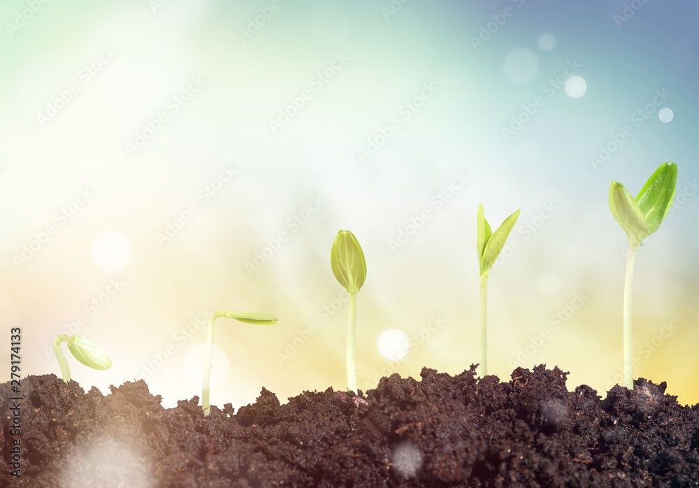 Growth of new life on green blurred background, bokeh