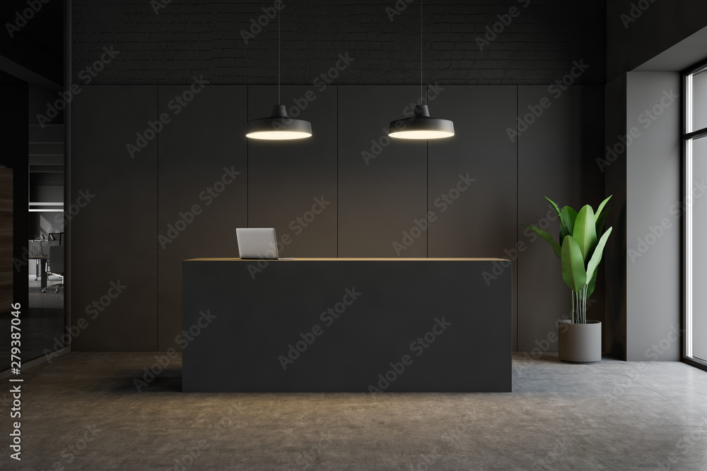 Dark gray reception desk in modern office