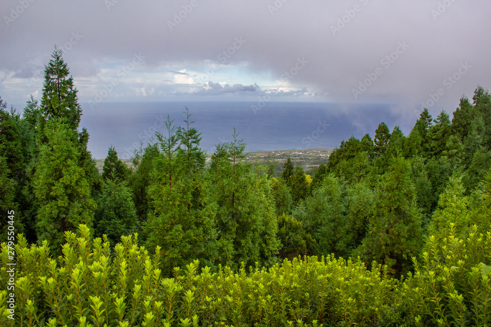 view over cloudy island of Sao Miguel Island, Azores, Portugal