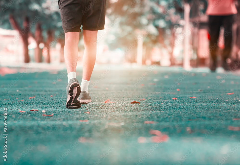 run jogging exercise for health lose weight concept on track rubber public park. Vintage tone