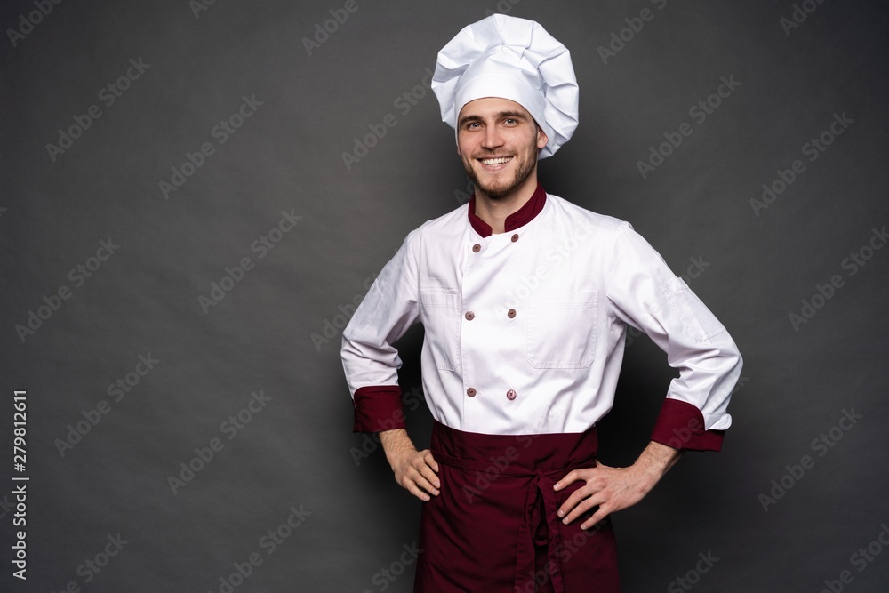Young male chef isolated on a black background.