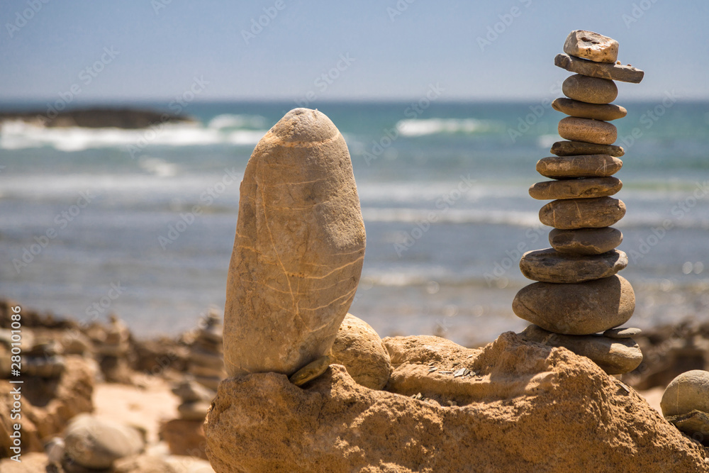 Una de pila de cantos rodados con el fondo del océano Atlántico