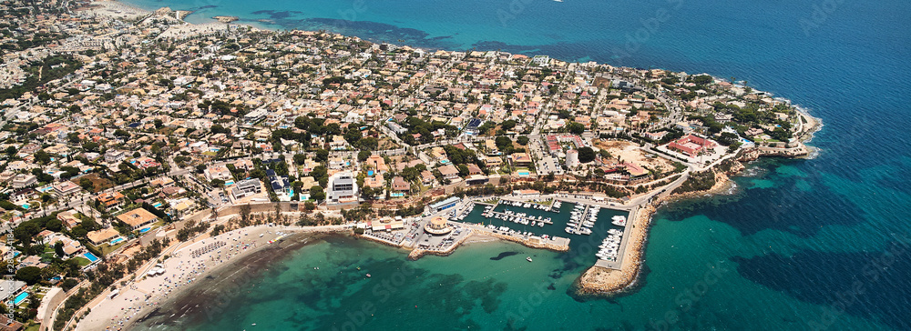 Aerial panorama drone point of view Mediterranean Sea coastline of Torrevieja, Spain