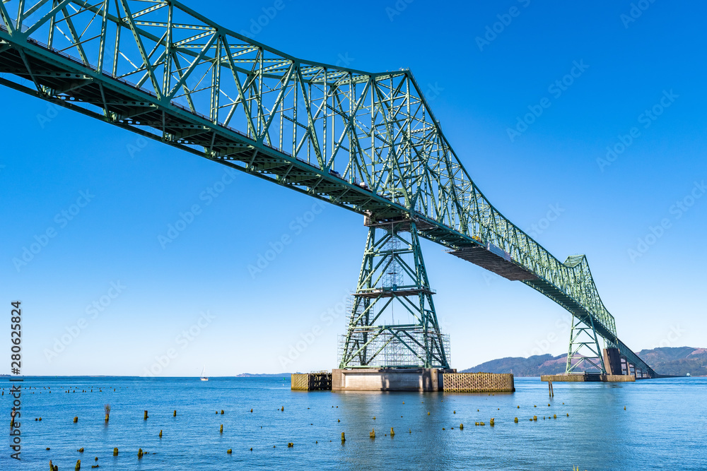 A section of the Astoria-Megler Bridge, a steel cantilever through truss bridge in the United States between Astoria, Oregon, and Point Ellice near Megler, Washington, over the Columbia River.