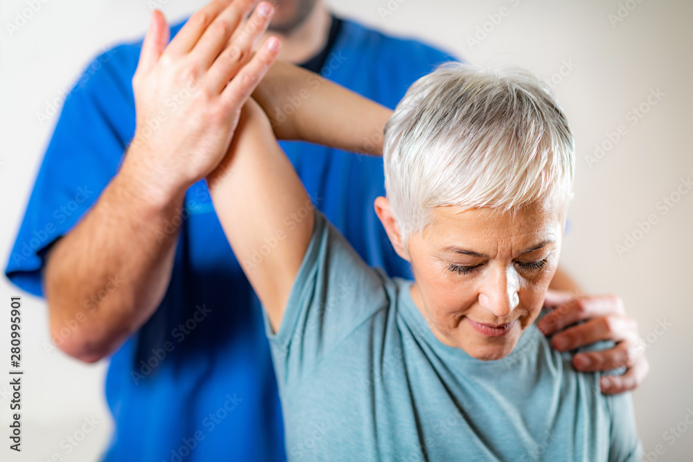 Therapist Checking Senior Woman’s Arm