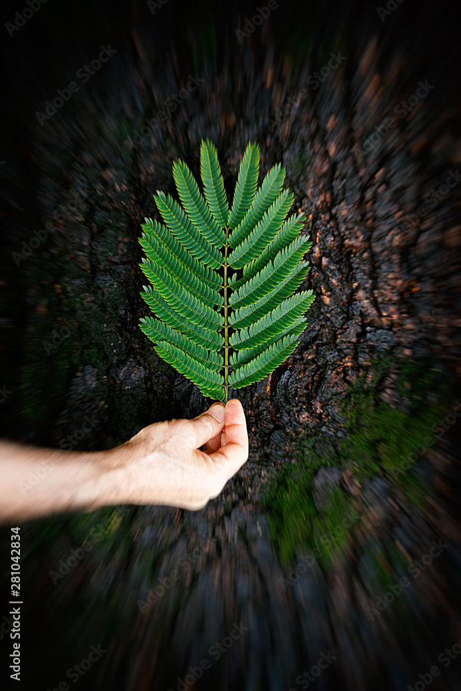 pink silk tree leaf on trunk II