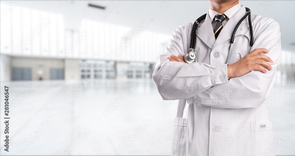 young doctor with hospital background