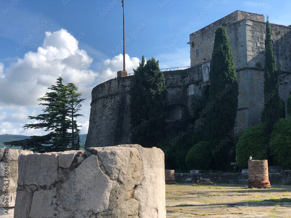 Hazelnut nut with yellow autumn leaves on a neutral gray background. Background and yellow leaves contrast perfectly with brown walnut shells