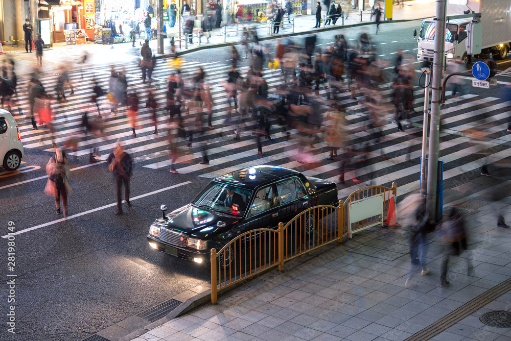 Taxi waiting for passenger at night in Tokyo 夜の東京 客待ちのタクシー