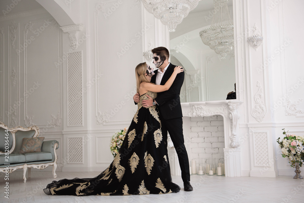A couple with skeleton make up for Halloween or All Souls Day