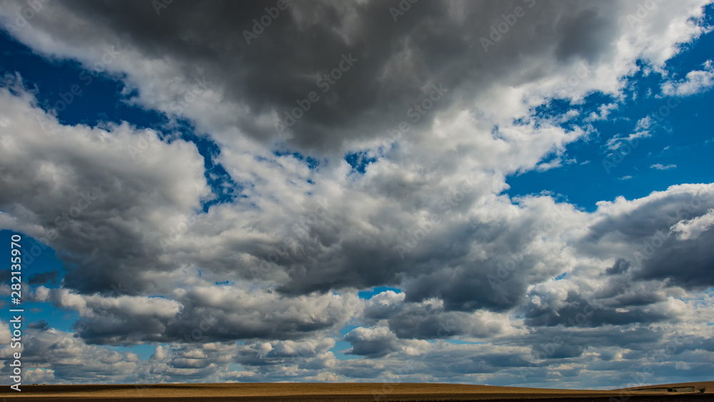 sky and cold rain clouds over the fields.