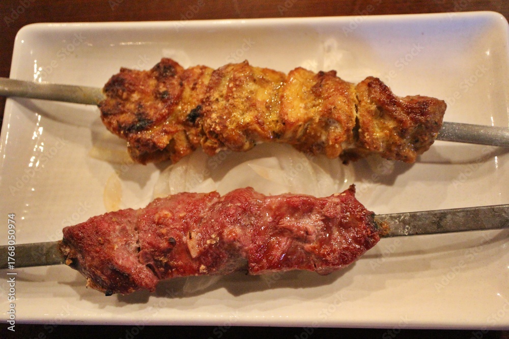 Caucasian woman in apron standing in kitchen and putting sauce on spaghetti.Preparation of italian food concept.