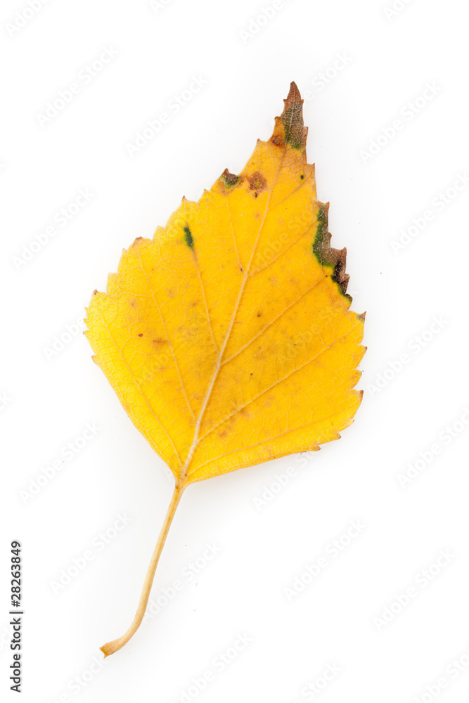 Beautiful yellow autumn leaf isolated on a white background