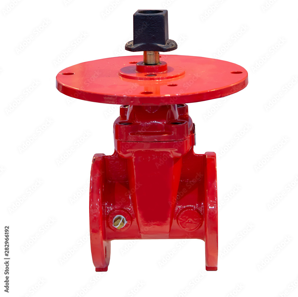 Non rising stem PIV gate valve flange connection for fire fighting pipeline isolated on white background