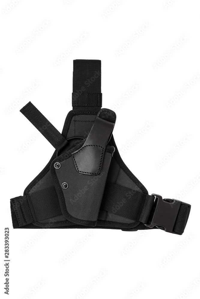 Black modern holster for a gun isolate on a white background.
