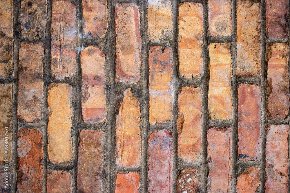 Orange worn grunge brick wall surface background weathered dirty distressed texture