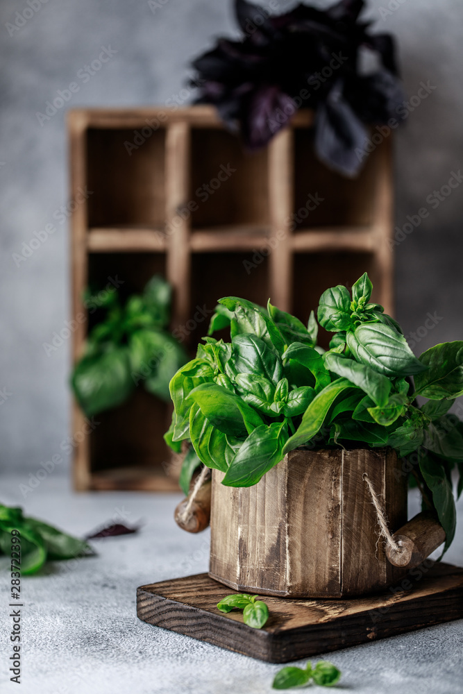 Fresh basil. Food background. Basil plant for healthy cooking