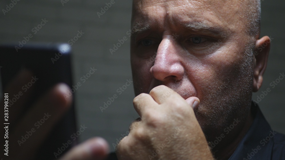 Worried Businessman Image in Darkness Using Smartphone Wireless Communication