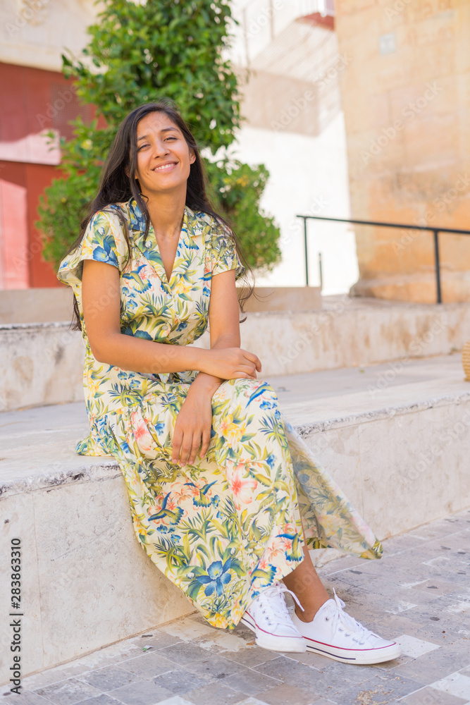 Young indian woman laughing in the street