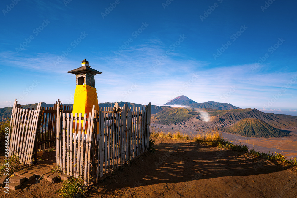 Landscape of Bromo volcano from view point on top of mountain, Java island, Indonesia this image can use for travel, outdoor, nature, temple.