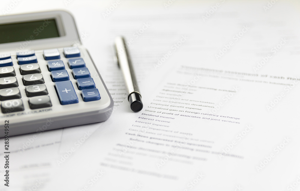 Calculator and pen Placed on accounting