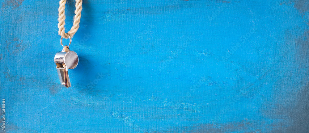whistle of a soccer / football referee or trainer,panorama mock up with free copy space