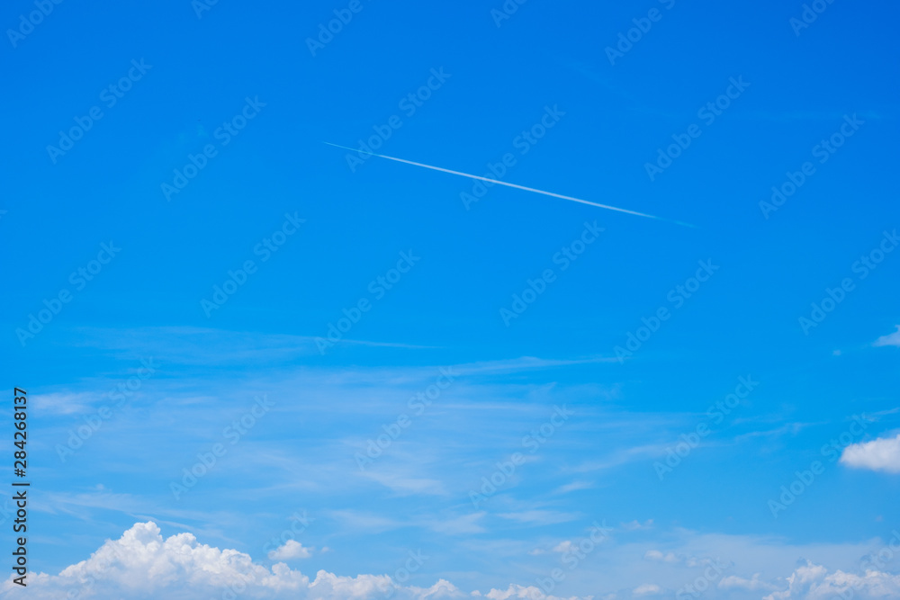 【写真素材】 青空 空 雲 夏の空 飛行機雲 背景 背景素材 8月 コピースペース