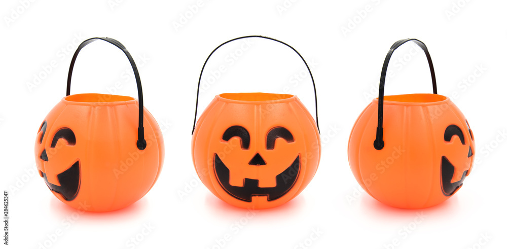 Halloween props cute plastic pumpkin head basket toy close-up on a white background
