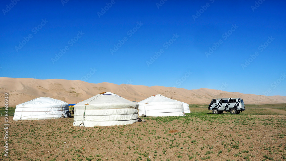 Mongolian Gers at the Khongor Sand Dune, Gobi Desert, Mongolia