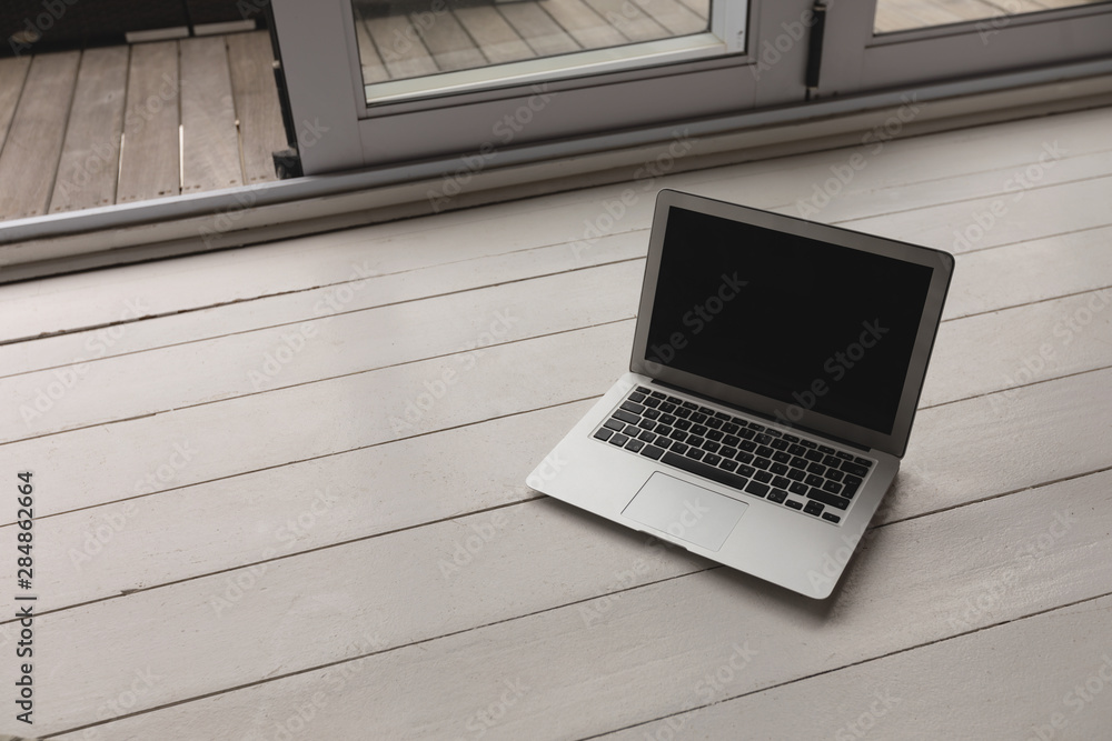Laptop kept on a wooden surface