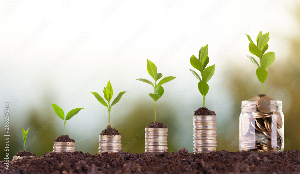 Growing Money - Plant On Coins - Finance growth And Investment Concept